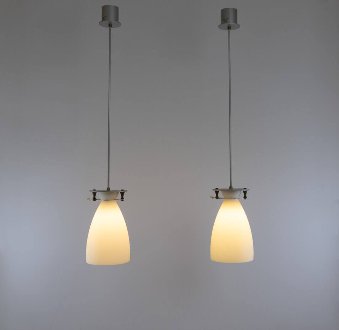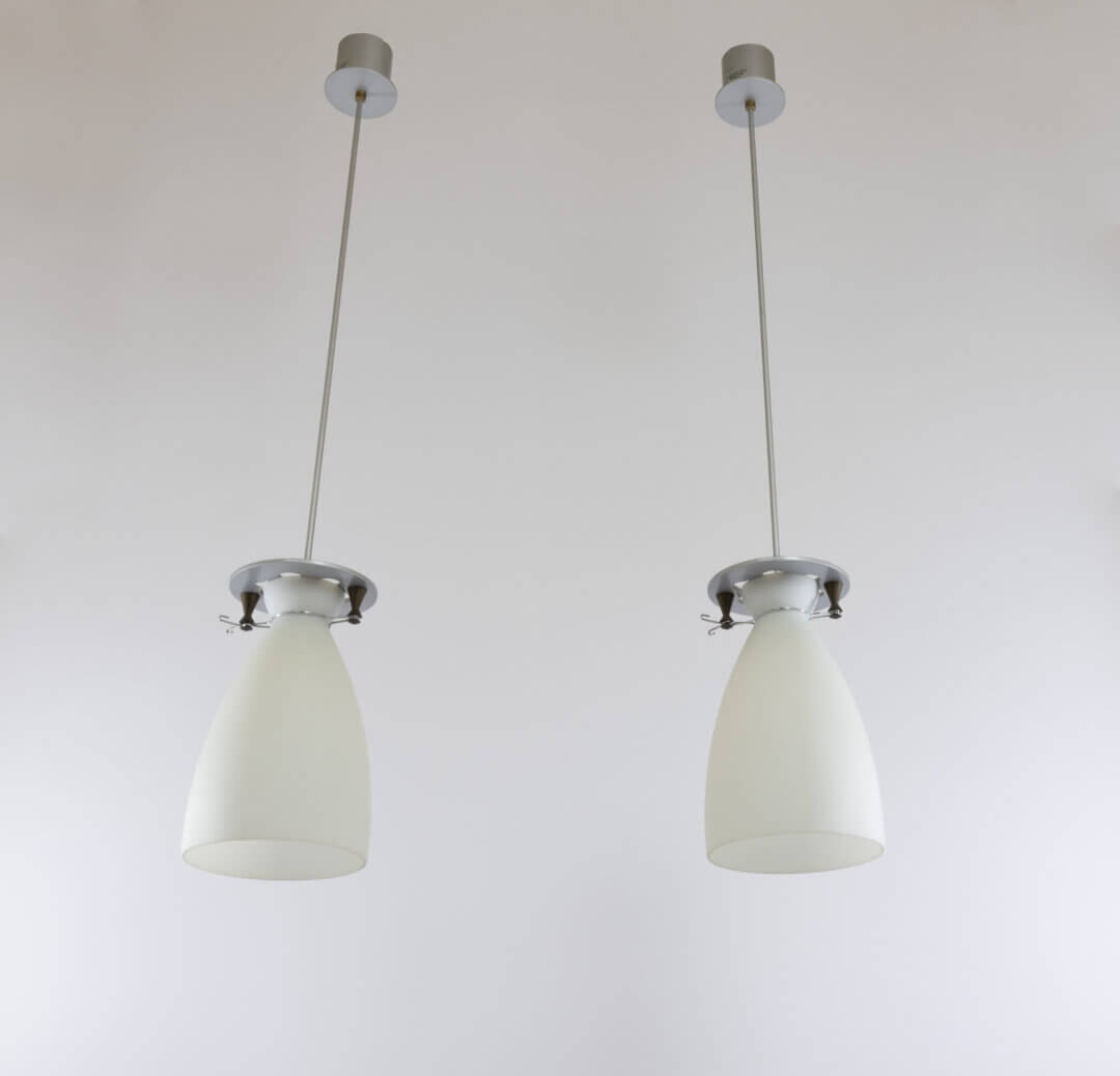 Pair of Franceschina pendants designed by Umberto Riva in 1989 and manufactured by Fontana Arte.